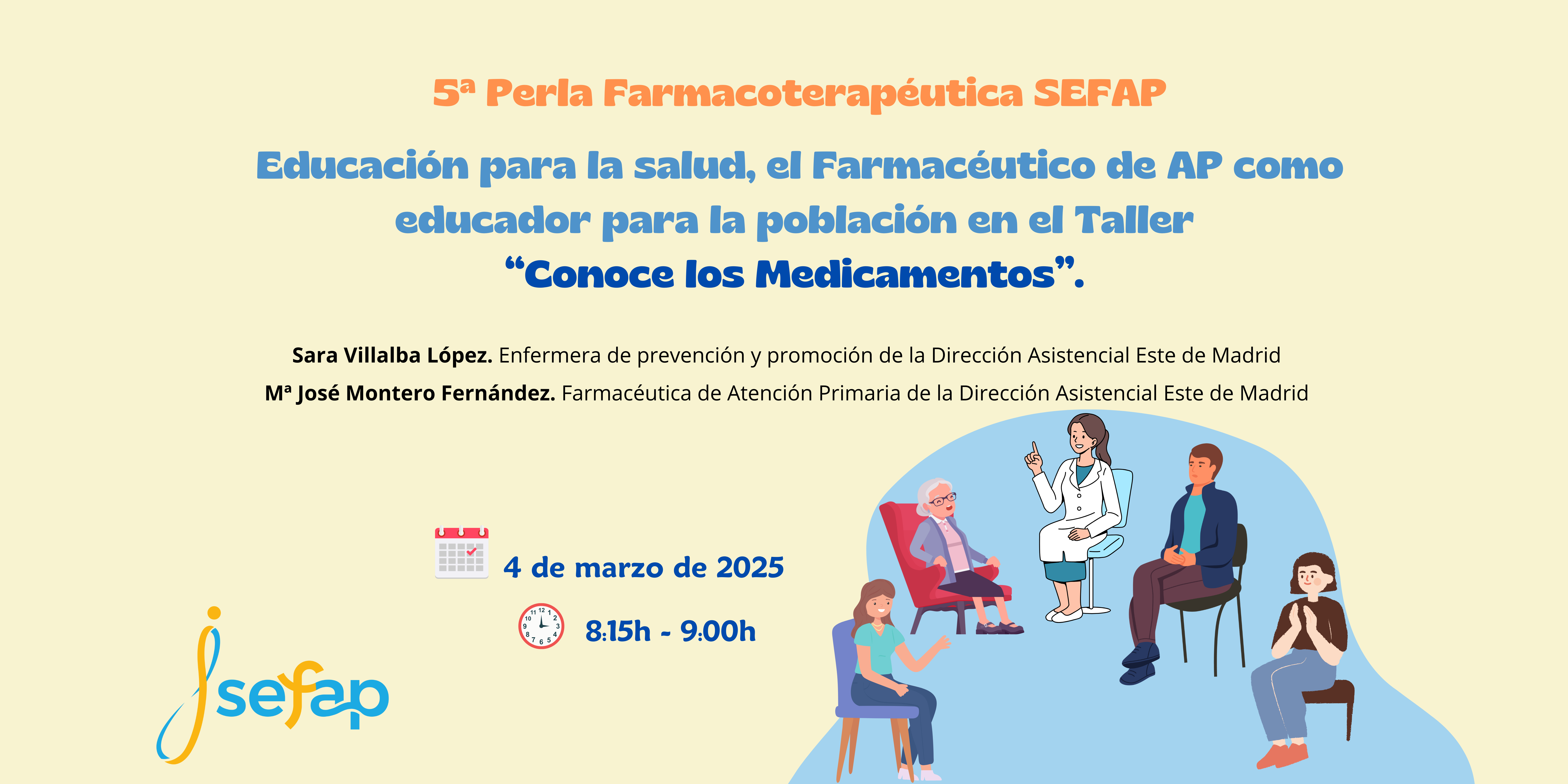 El próximo 4 de marzo de 2025 tendrá lugar la Quinta Perla Farmacoterapéutica SEFAP, dedicada al tema “Educación para la salud, el Farmacéutico de AP como educador para la población en el Taller “Conoce los Medicamentos”.